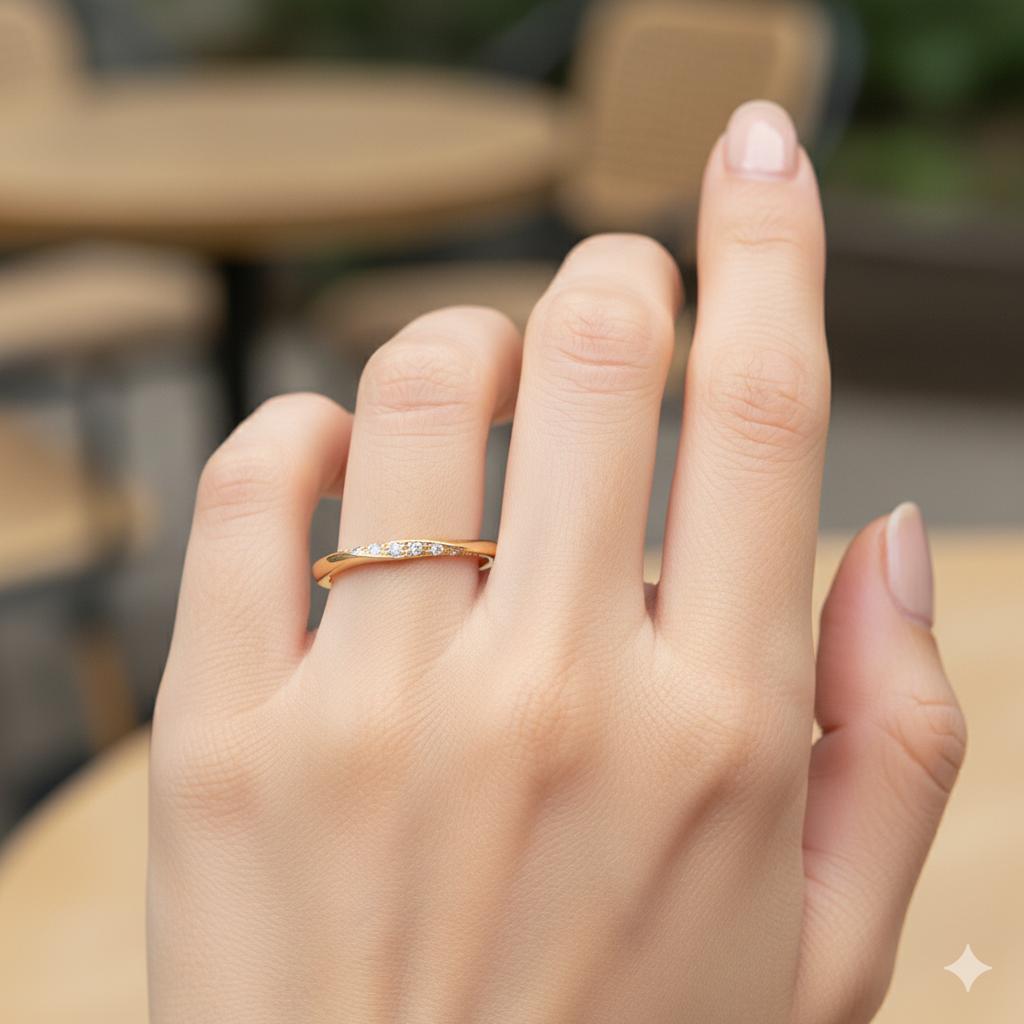 単体ではもちろん、他のリングとの重ね付けにも相性が良く、スタイルに合わせて印象を変えられるのも魅力。オフィスやカジュアル、特別な日まで幅広く活躍します。ギフトとしても人気の高い定番アイテムです。