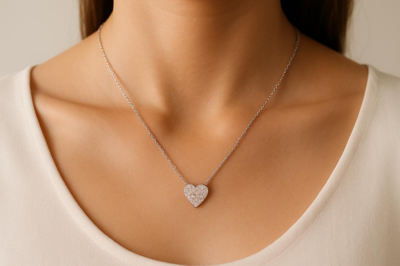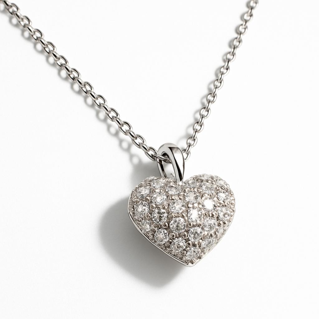 きらめく小粒のストーンを贅沢に敷き詰めた、パヴェスタイルのハートネックレス。